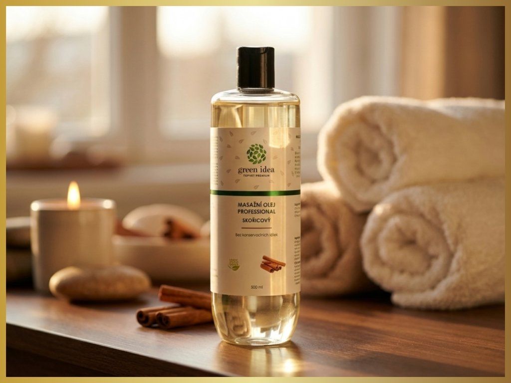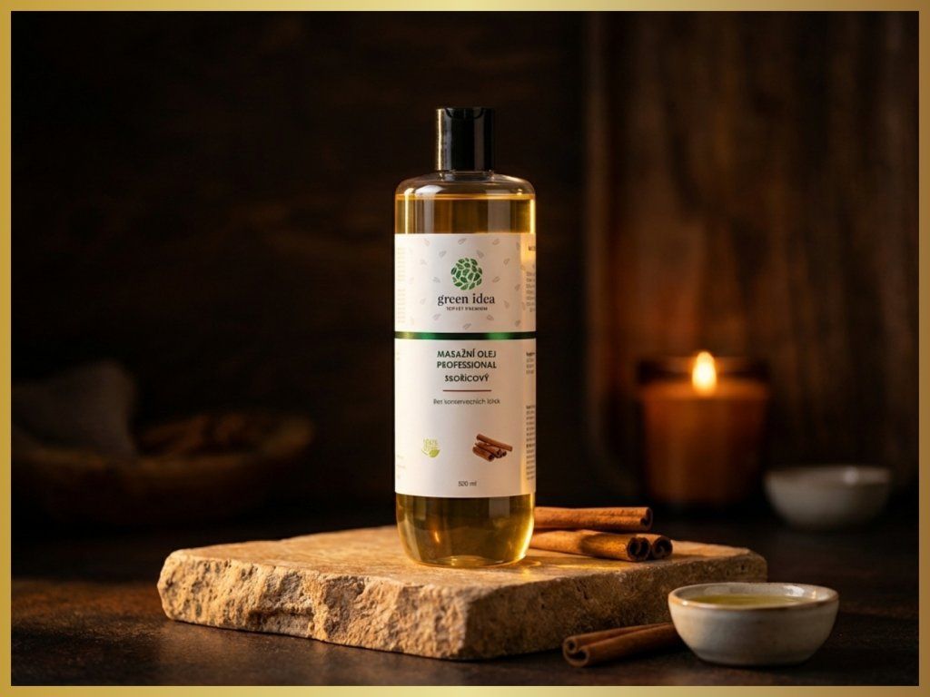 Hřejivý skořicový masážní olej pro podporu mikrocirkulace, prokrvení podkoží a jemné fasciální uvolnění.